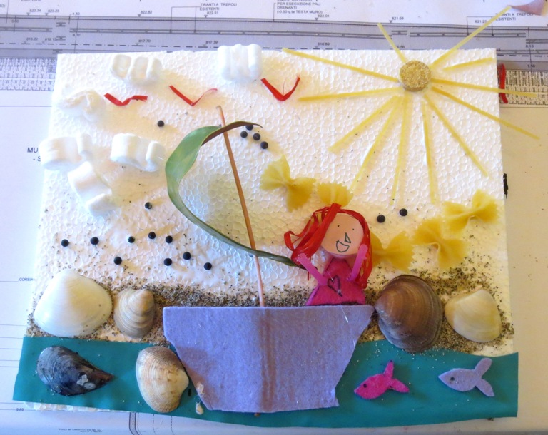 Autore: Anna (4 anni) Paesaggio naturale Anna ha realizzato un paesaggio marino cominciando dalle conchiglie che si trovano sul fondo del mare. …