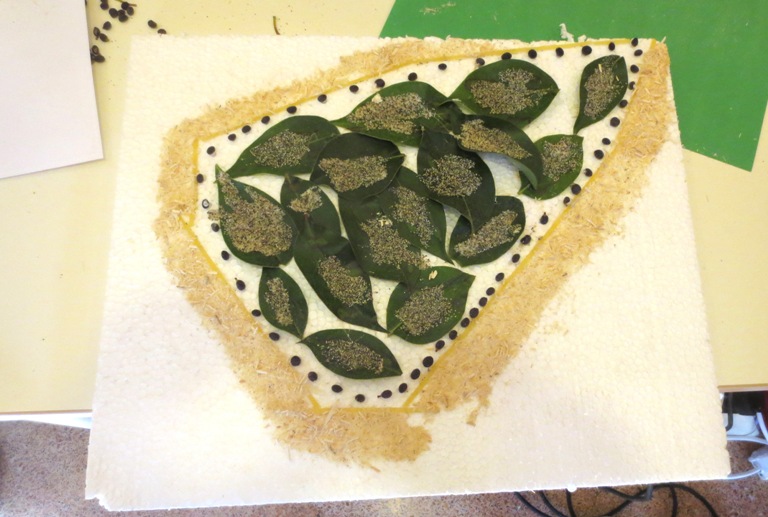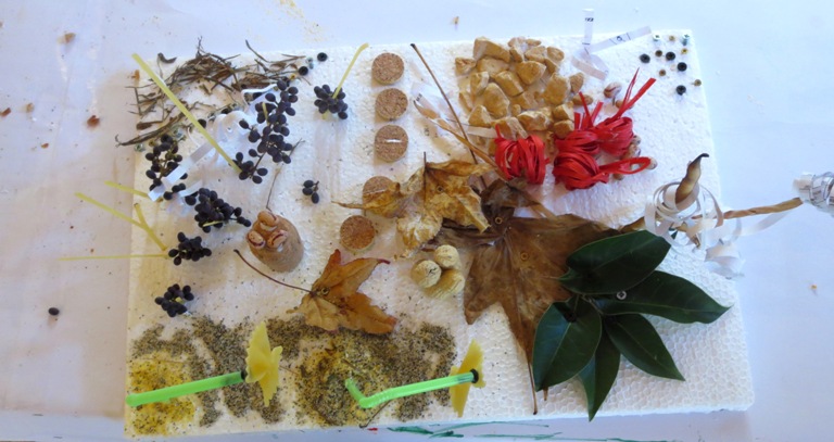 Autore: Emma (8 anni) Paesaggio misto “Paesaggio naturale e pochissimo artificiale. Ci sono tante piante diverse (realizzate con foglie, bagigi, bacche, rametti, …