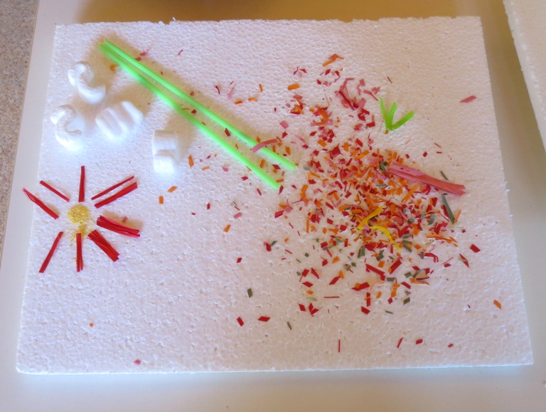 Autore: una mamma Paesaggio naturale Il sole e i suoi raggi (realizzato con farina di mais e rafia), in un cielo con …
