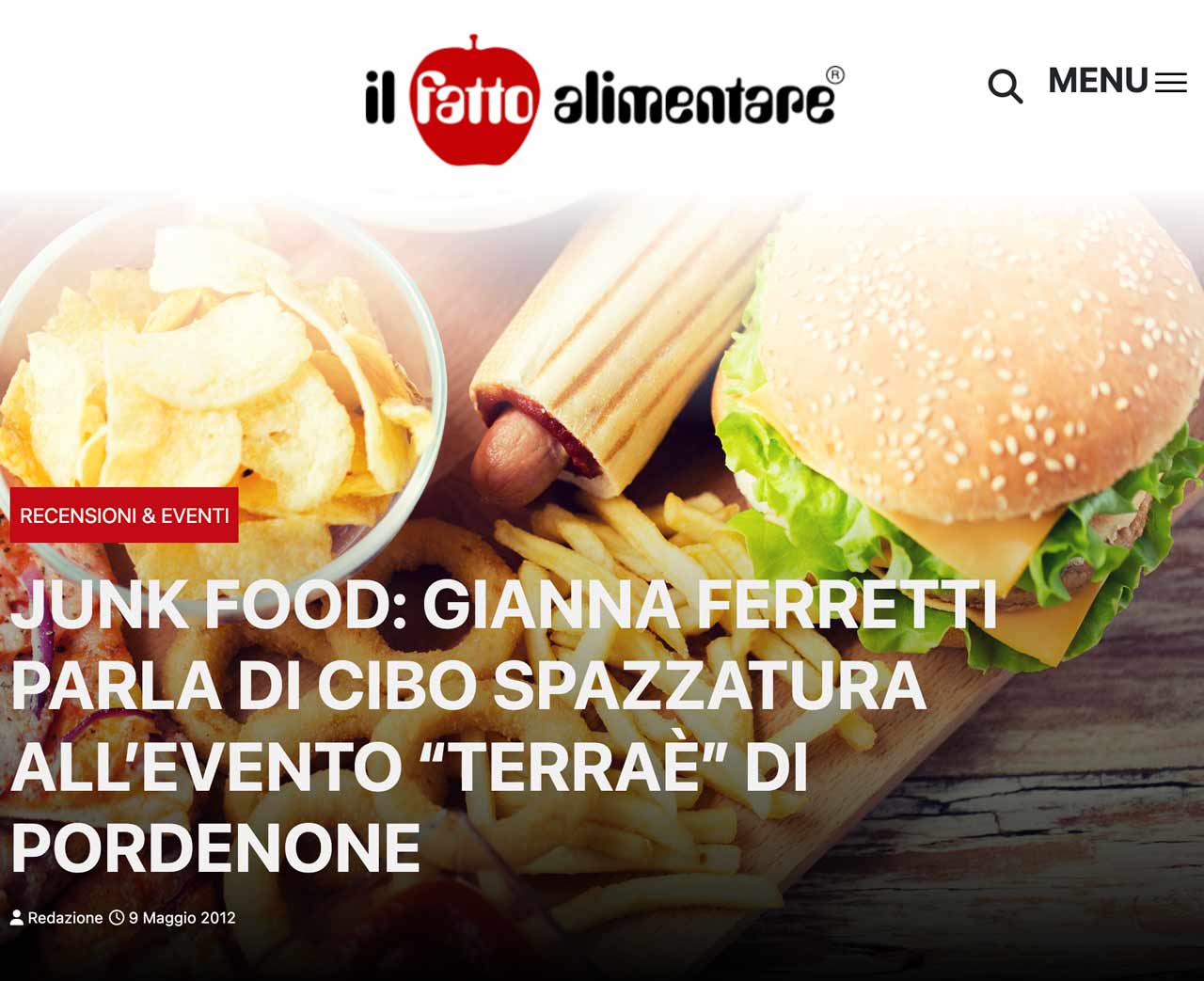 Junk food, ossia il cibo spazzatura, è l’argomento che Gianna Ferretti tratterà, nell’edizione 2012 di Terraè, a Pordenone il prossimo 18 maggio.